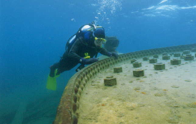 SCUBA Certifications Basic SCUBA Certification , March,1970-Aqua Knights of Hamilton ACUC and NAUI CERTIFICATION ,1972 ACUC INSTRUCTOR-418EA, 1976 * CMAS INSTRUCTOR, 2 STAR, M2 CDN 160* PADI UNDERWATER INSTRUCTOR, 10223, 1979 PADI OPEN WATER INSTRUCTOR PADI SPECIALTY INSTRUCTOR, 9 AREAS PADI MASTER SCUBA DIVER TRAINER DAN OXYGEN INSTRUCTOR, #1897, April 8, 1994 ENRICHED AIR NITROX DIVER, IANTD, #25312 May 25, 1997 * No longer current with these two agencies. Chris Gilchrist examines the boiler on the Wetmore, Fathom Five National Marine Park. Photo by David Gilchrist(Copyright1999) |