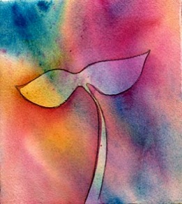 Loosely sketch leaves onto the dry paper with a pencil. Follow my example, or create your own personal symbol. While it may be tempting to want more intricate, complex forms, keep your shapes very simple and flat for this exercise.